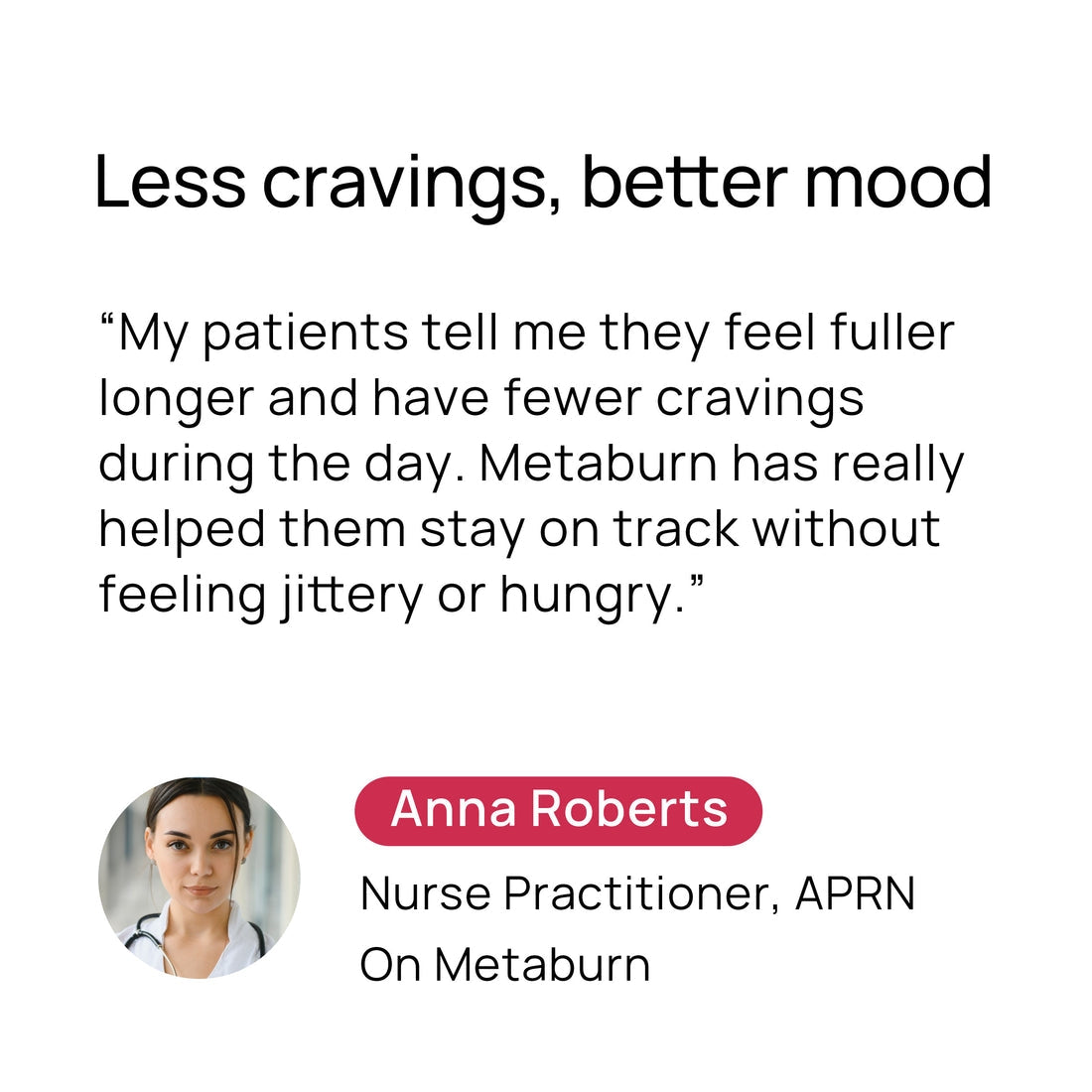 Achieving healthy metabolism is more than just eating less or exercising more. Your body’s appetite rhythm, blood sugar balance, and energy use are regulated by natural metabolic pathways like GLP-1. But these systems can become dysregulated by stress, poor sleep, or age. That’s why Metaburn is designed for daily support — with a dual-action blend of Berberine, Chromium, Green Tea EGCG, and B12 to help balance glucose levels, reduce energy crashes, and keep cravings in check — gently, every day.